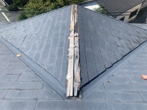 日高市、リフォーム工事、棟板金交換です。